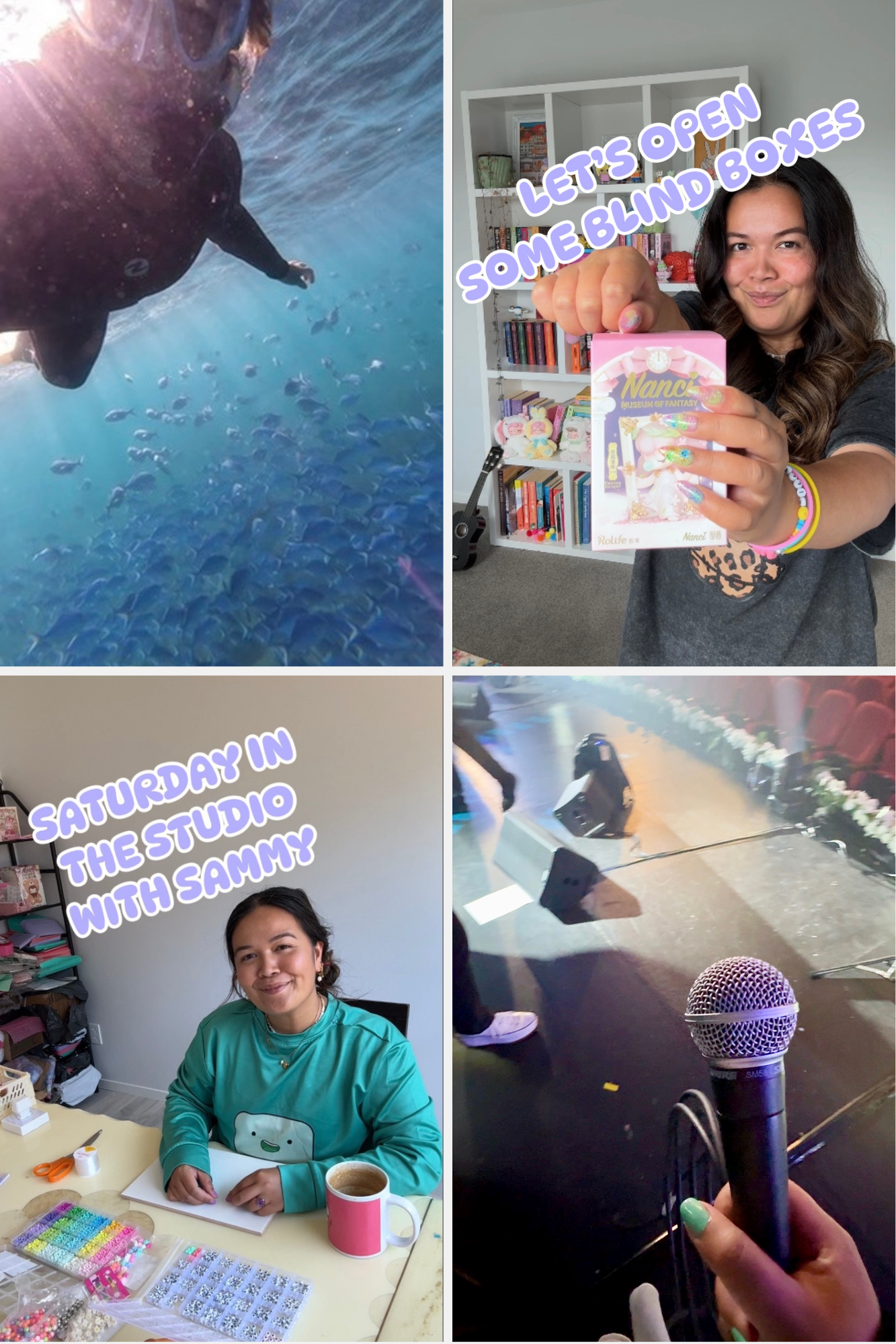 On TikTok, I share a mix of theatre life, snorkelling slash mermaid moments, blind box openings, and a series called “Sammy spending money but that’s ok because she’s supporting a small business”.